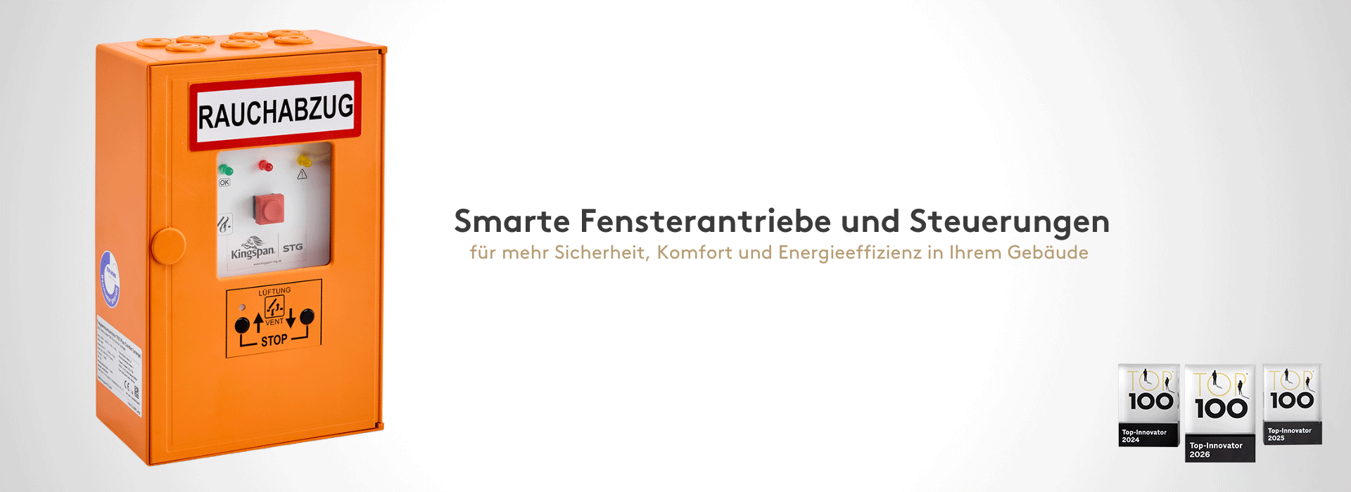 Seit über 30 Jahren entwickelt die Kingspan STG GmbH standardisierte und projektspezifische Lösungen für die Fassadenautomation. Unsere Technologien für elektromotorische Fensterantriebe, berührungslosen Eingriffschutz, DBA- und RWA-Systeme sorgen weltweit in Industrie-, Gewerbe- und Verwaltungsbauten für mehr Komfort und Sicherheit. Dabei leisten sie auch einen wertvollen Beitrag zur Optimierung der Investitions- sowie Betriebskosten.